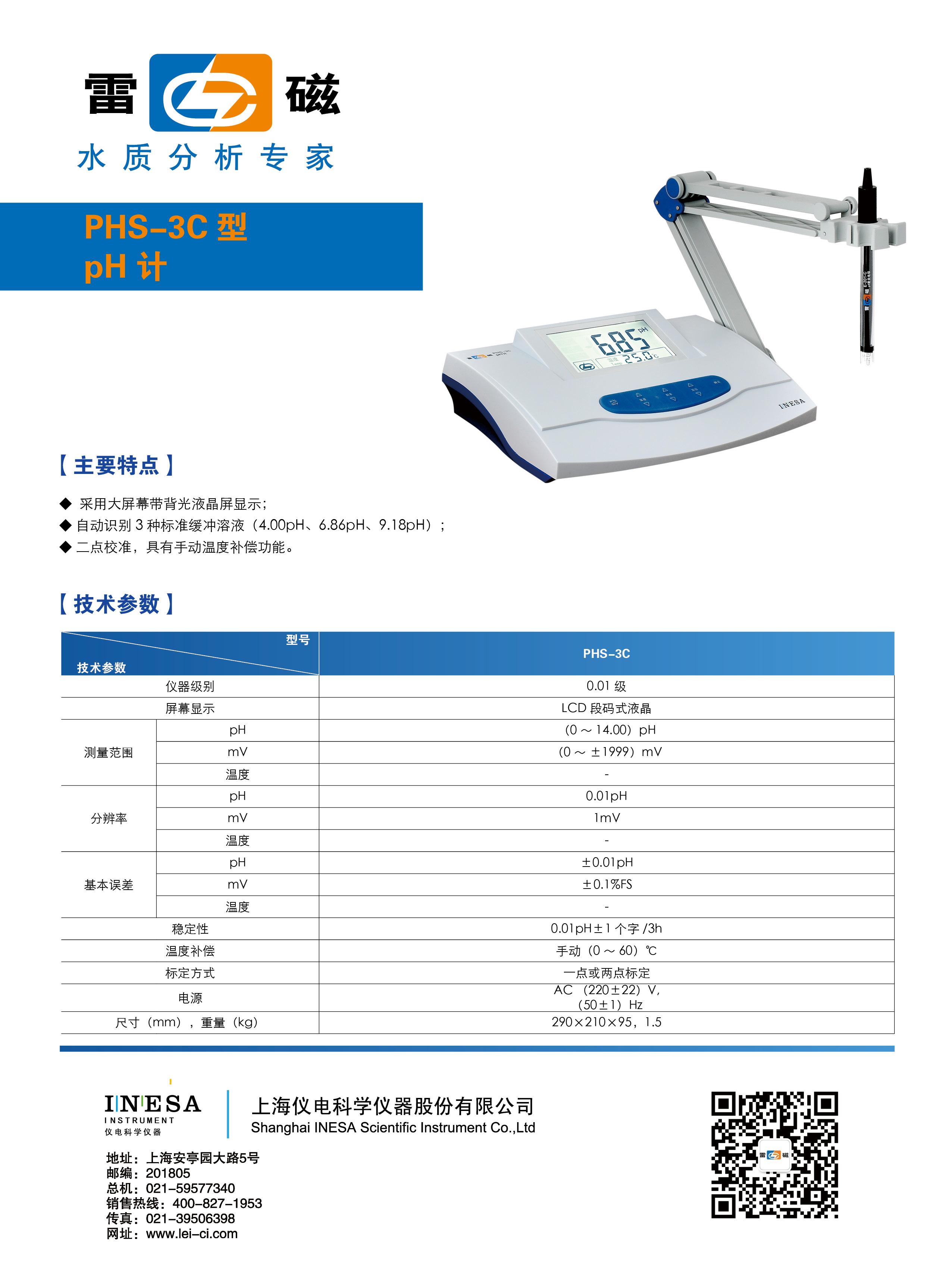 上海雷磁 實(shí)驗(yàn)室PH計(jì) PHS-3C
