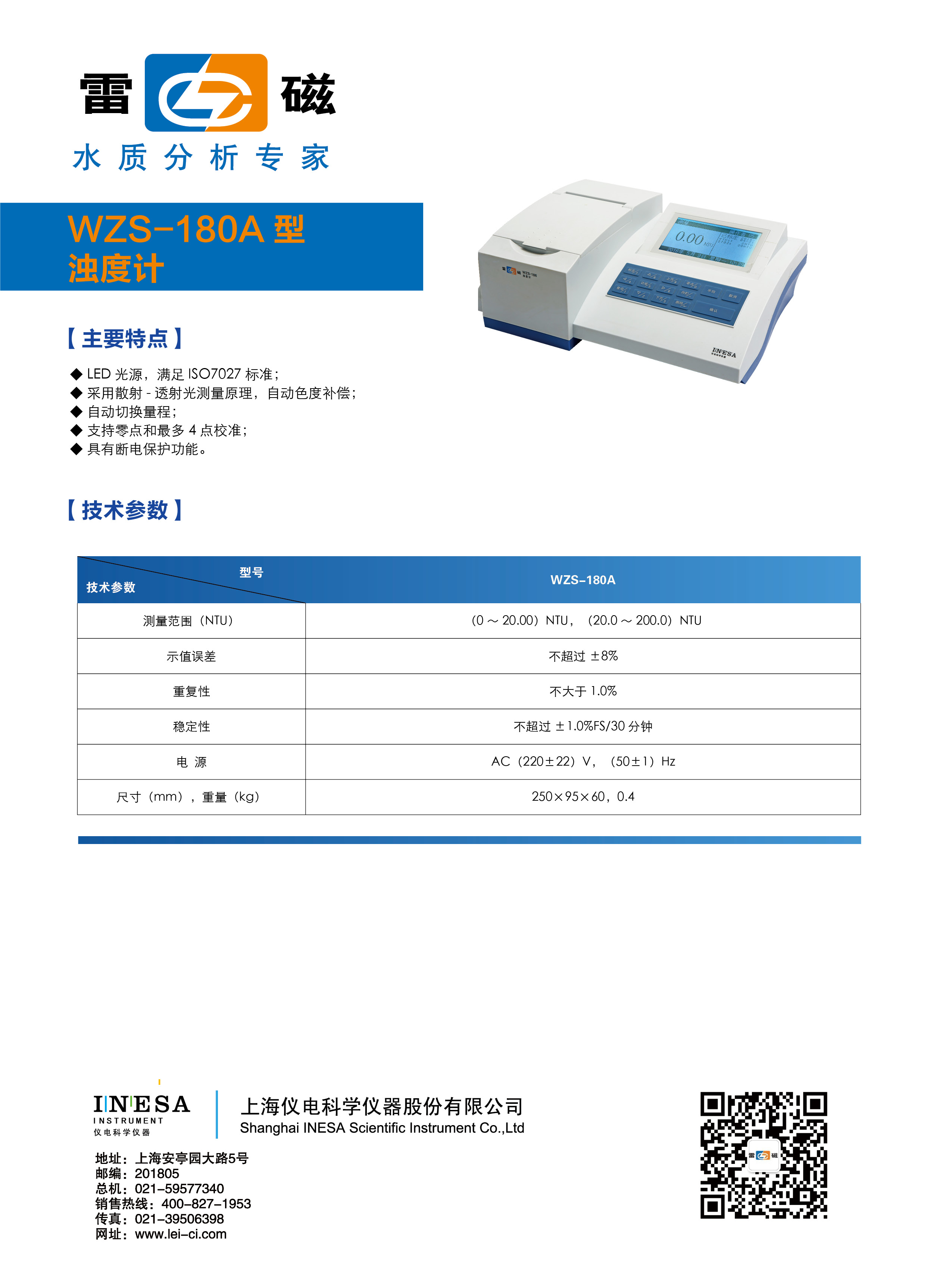 留言板——上海雷磁濁度計(jì)WZS-180A型